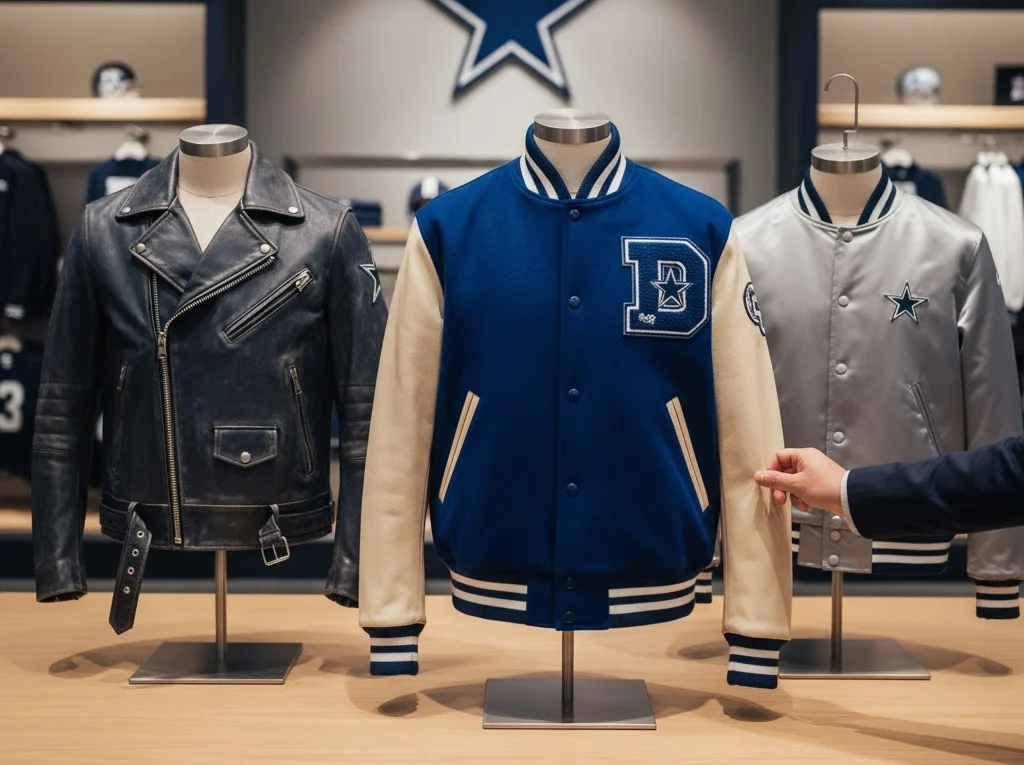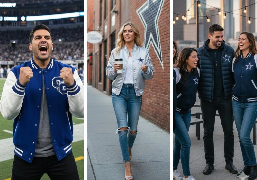 Bomber: For a bold and classic ensemble, the Dallas Cowboys bomber jacket is a perfect option. They give confidence and are versatile for casual and tailored events.