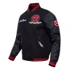 The Chicago Bulls Team Badge Wool & Leather Jacket is a stylish piece designed for both men and women. Crafted from a durable wool body and leather sleeves, with a sleek black color highlighted by red accents in the ribbed knitted collar, cuffs, and hemline. The combination of button and zipper closure adds both functionality and style. Inside, the soft viscose lining ensures a comfortable fit. Embroidered with the Bulls name and logo on the chest, sleeve, and back, this Bulls Team Badge varsity jacket boldly displays your team spirit. Featuring two slashed waist pockets and two inner pockets, it offers practical storage space. Whether you’re heading to the game or out with friends, this jacket is a perfect way to show your support.