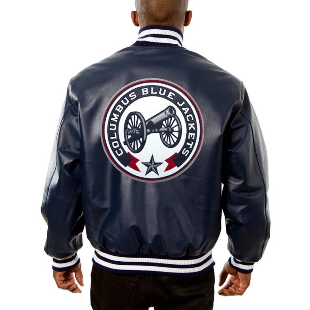 Columbus Blue Leather Varsity Jacket