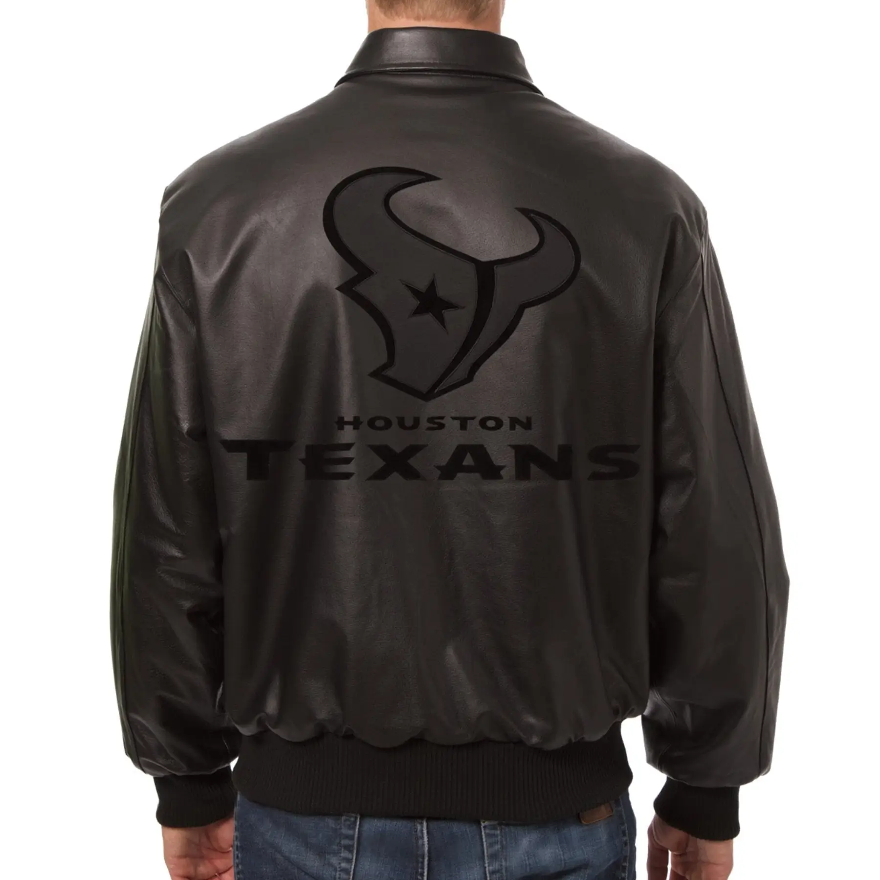Houston Texans Tonal Black Leather Bomber Jacket