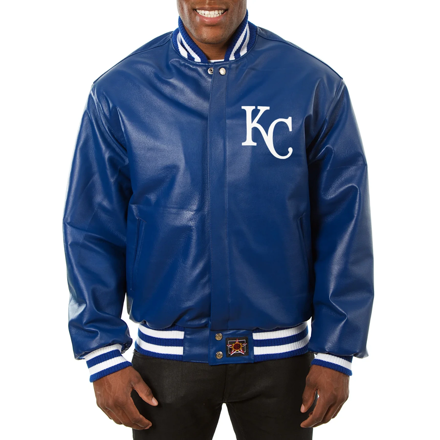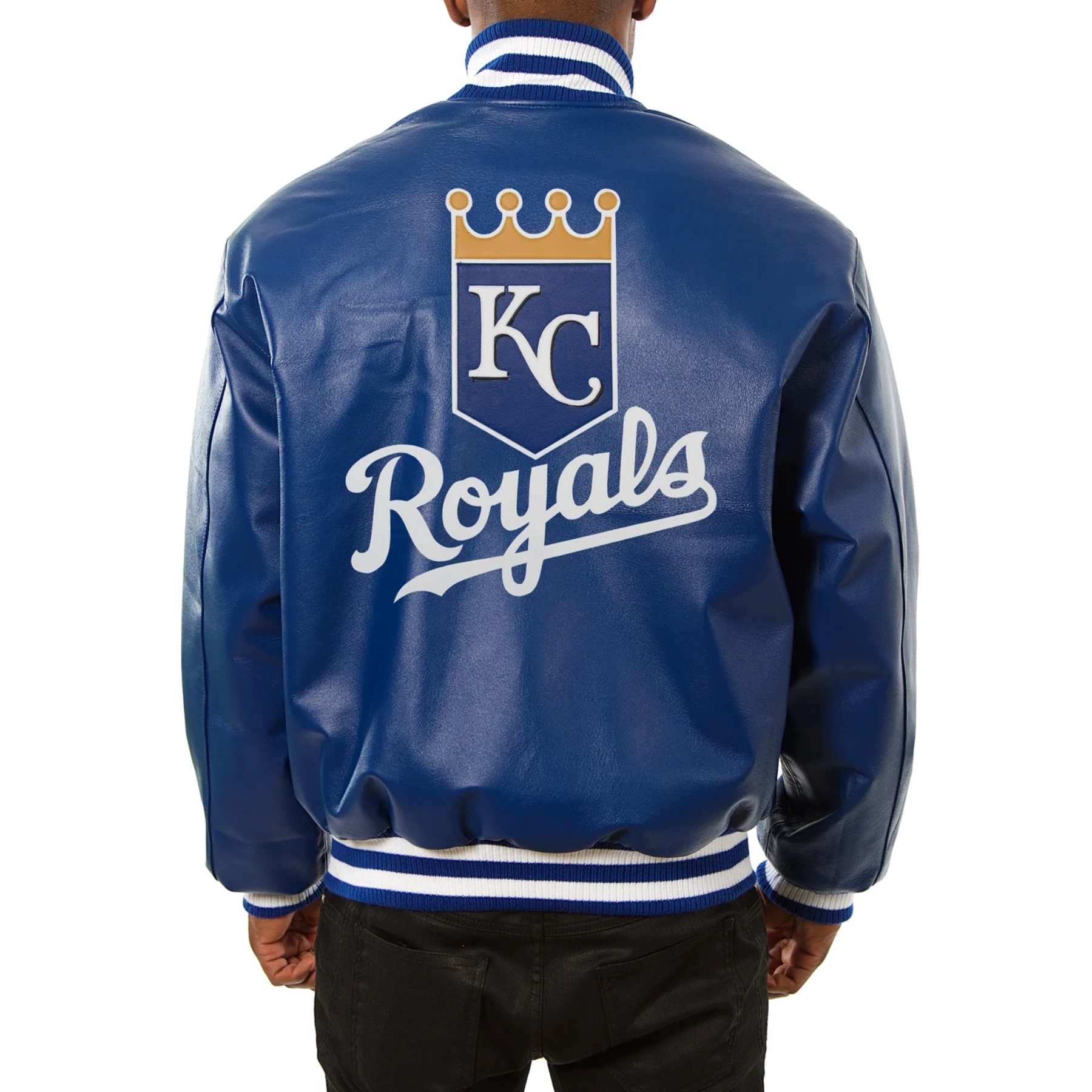 Blue Kansas City Royals Leather Varsity Bomber Jacket