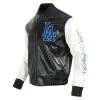 LA Dodgers Full-Zip City Signature Black & White Leather Varsity Jacket
