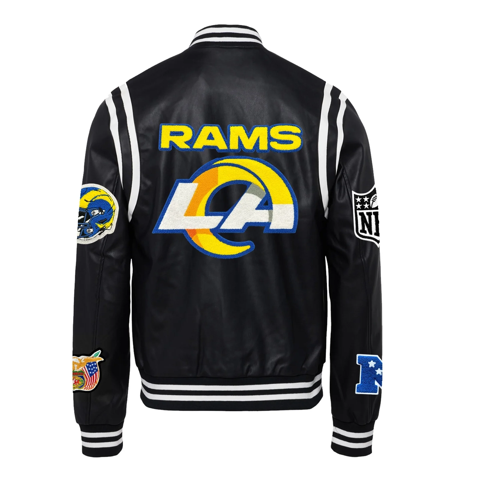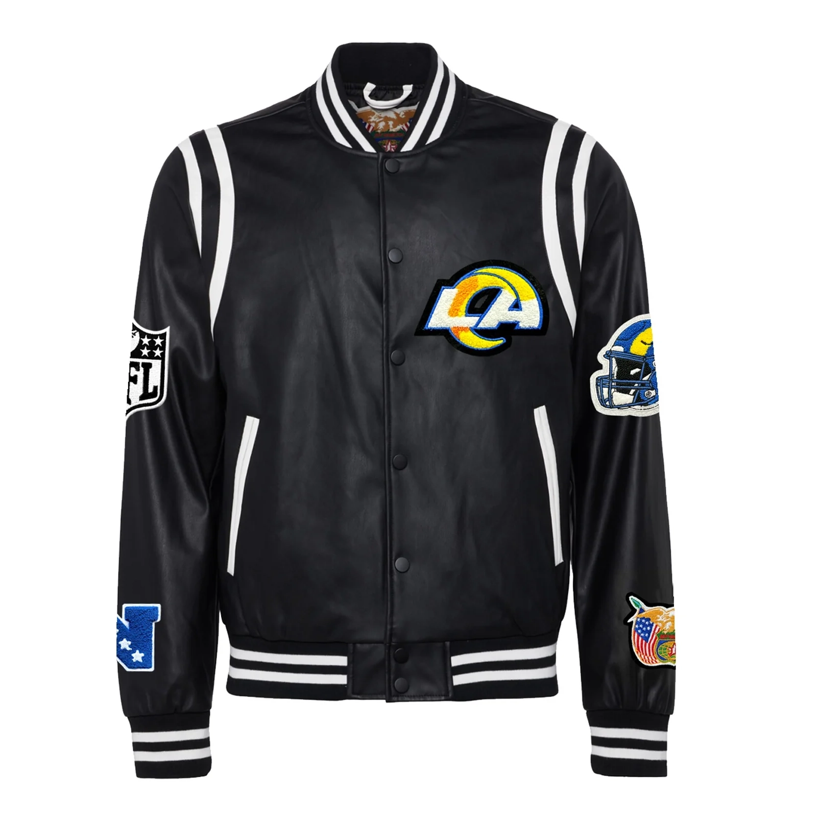 Los Angeles Rams Vegan Full-Snap Black Leather Varsity Jacket