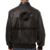 Miami Dolphins Tonal Black Leather Bomber Jacket