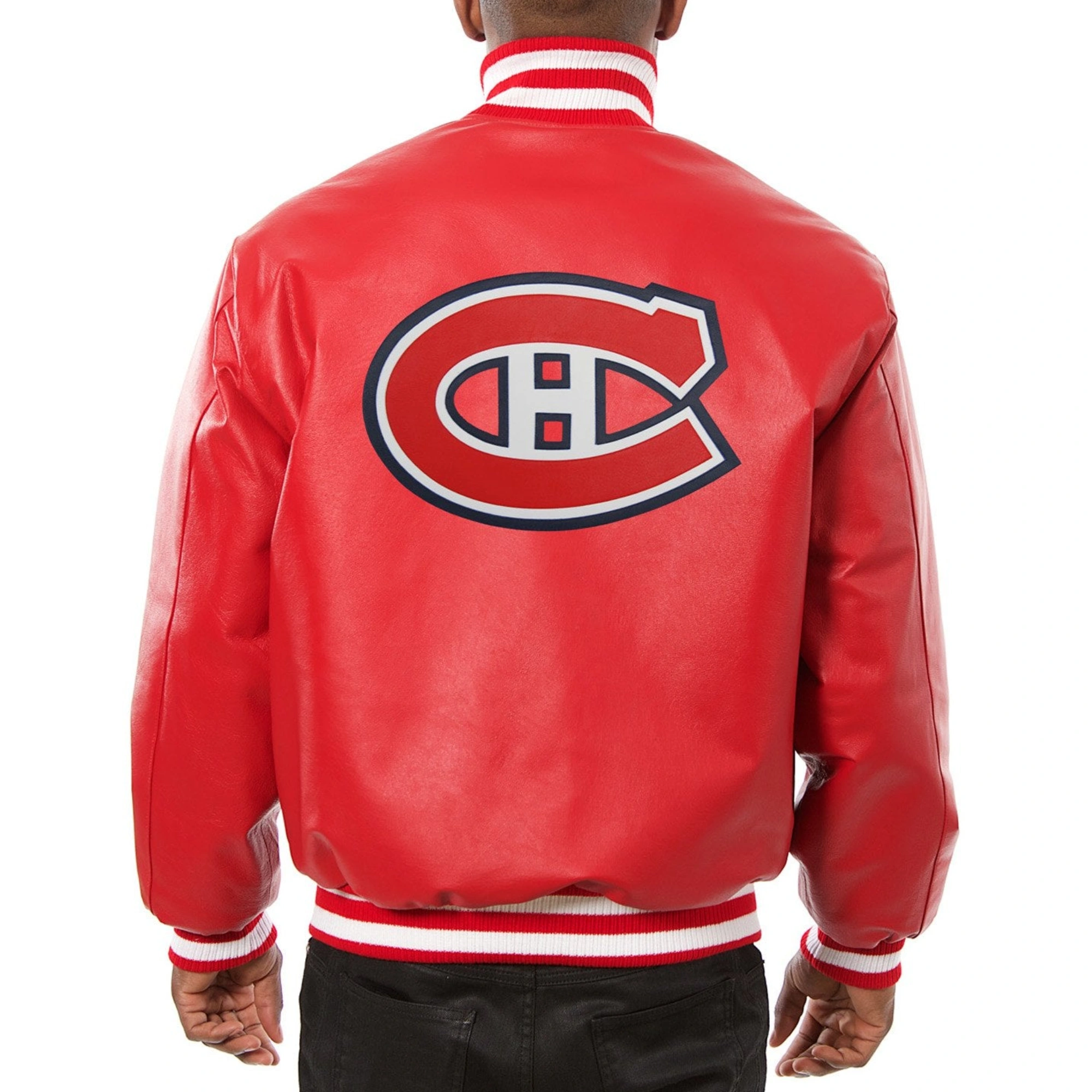Red Montreal Canadiens Leather Varsity Bomber Jacket