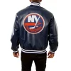 Navy New York Islanders Full Leather Bomber Jacket