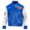 New York Knicks Full-Zip City Signature Blue & White Leather Varsity Jacket