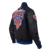 NY Knicks Team Badge Rib Wool & Leather Varsity Jacket