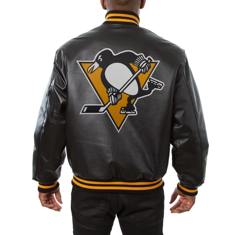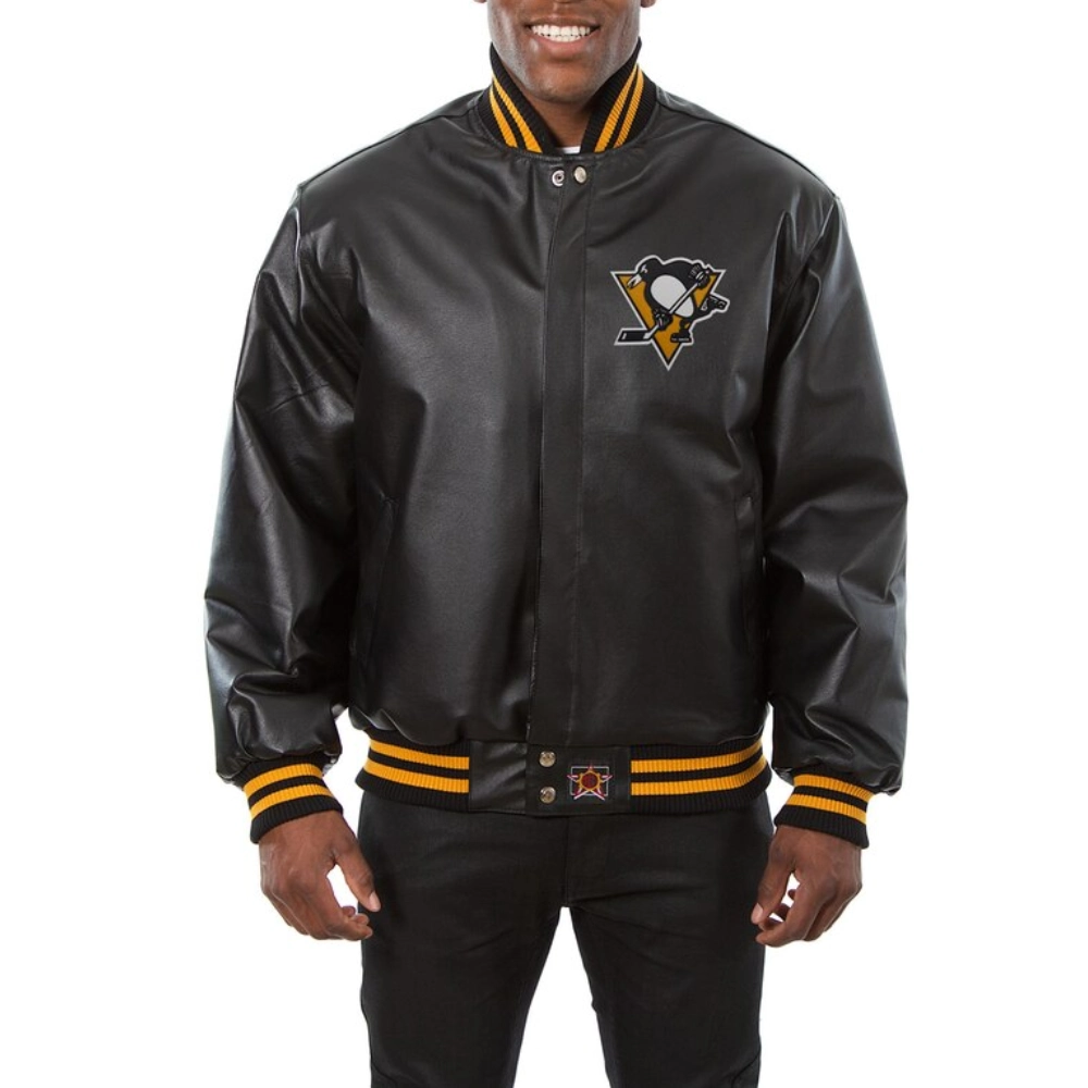 Black Pittsburgh Penguins Leather Varsity Bomber Jacket