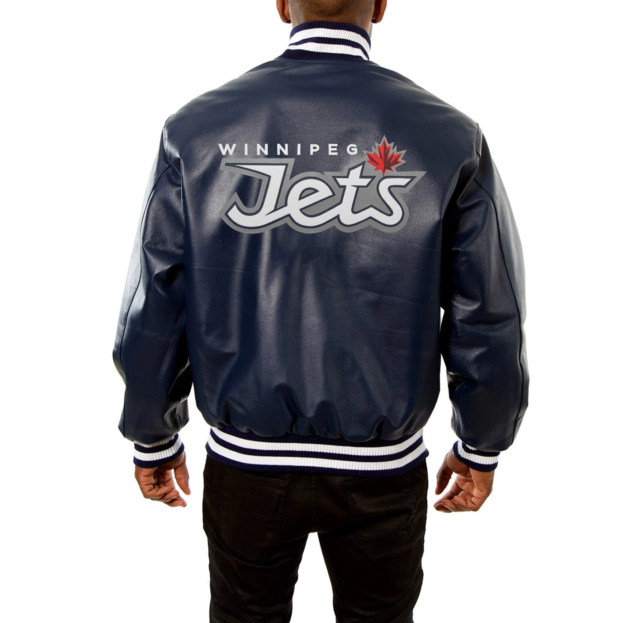 Navy Winnipeg Jet Leather Varsity Bomber Jacket