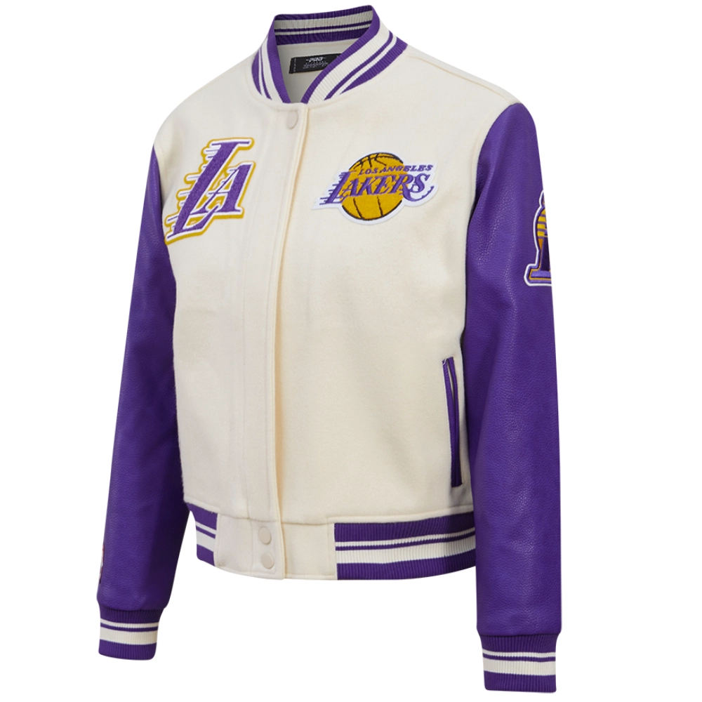 Woman’s Retro Classic LA Lakers Rib Wool & Leather Varsity Jacket