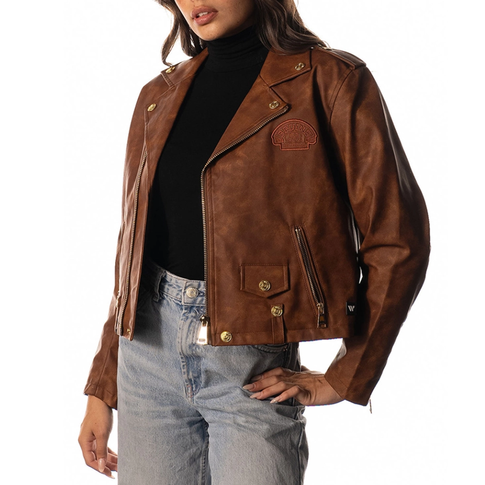 To show your loyalty as a team fan, the Boston Bruins Biker Suede Leather Jacket has an embroidered patch of the Boston Bruins logo on the left chest and back. This jacket is a must for every chic female who wants to make a bold statement, whether on the road or at casual meetings..
