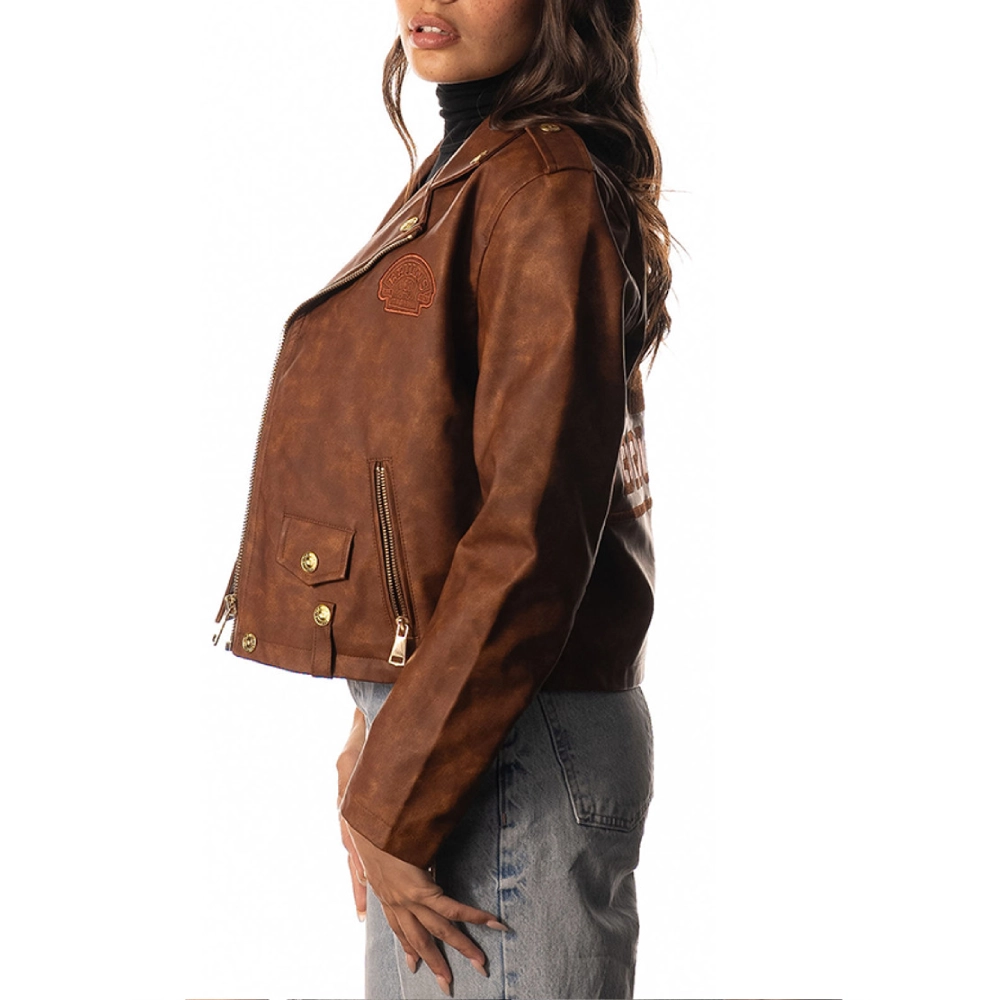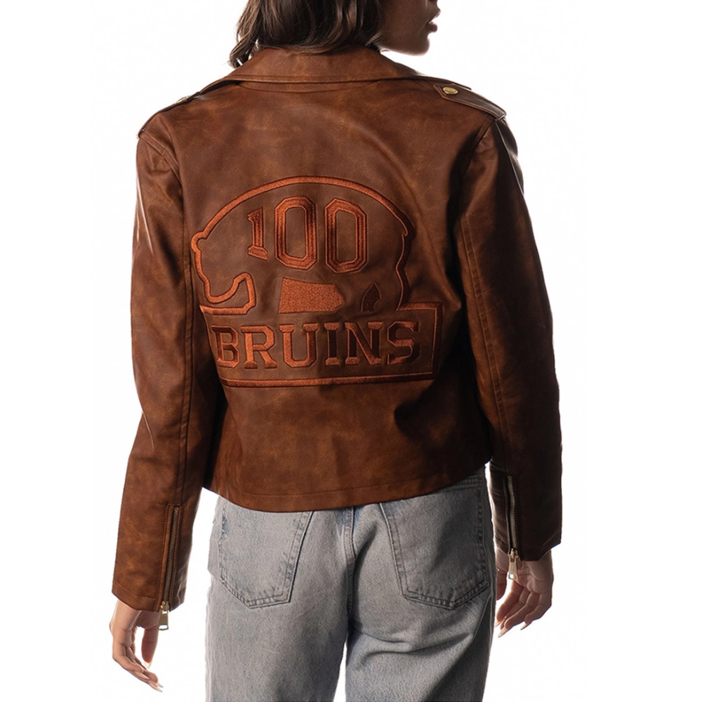 Women’s Boston Bruins Motorcycle Full-Zip Brown Suede Leather Jacket
