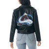 Colorado Avalanche Women’s Biker Full-Zip Leather Black Jacket