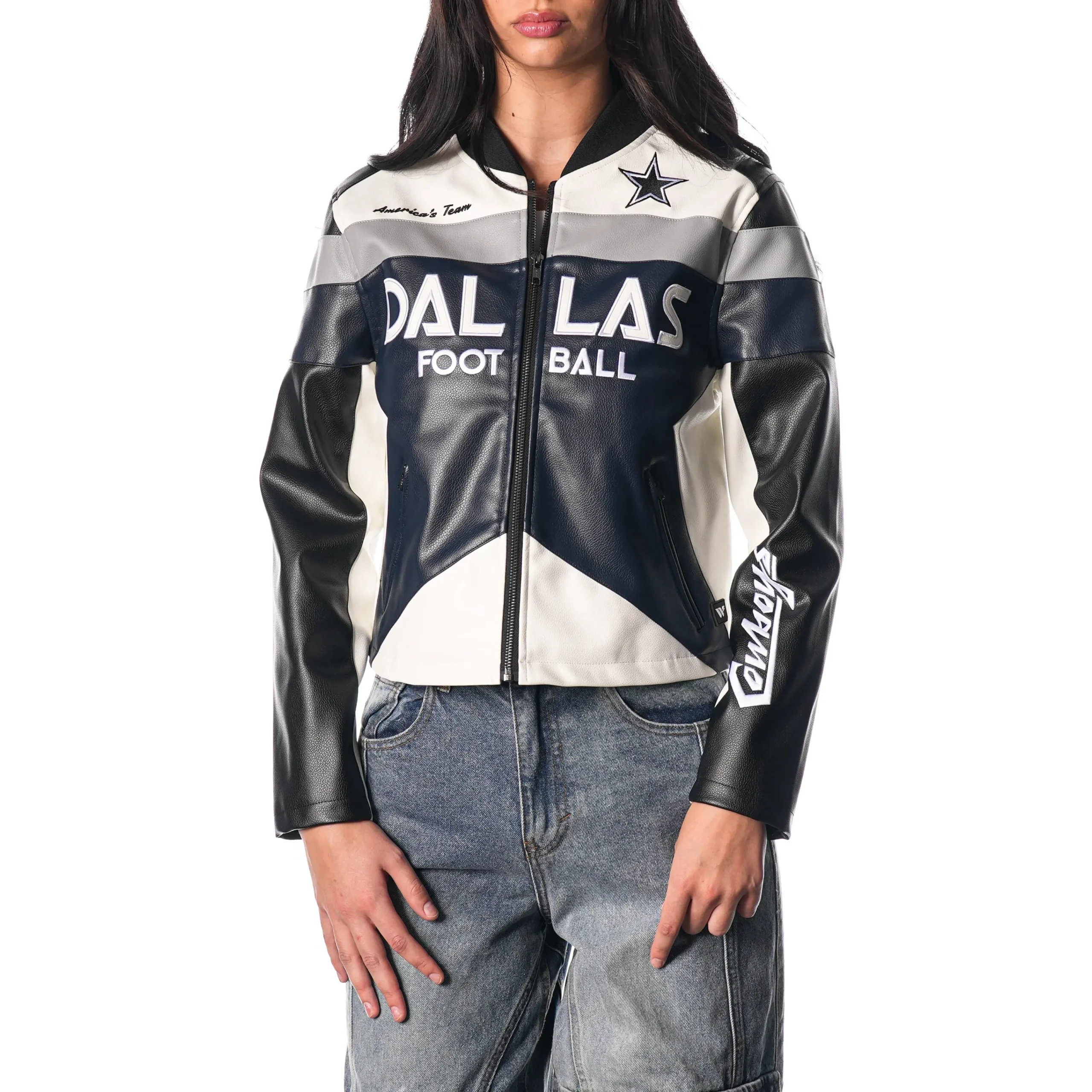 Women’s Dallas Cowboys Moto Full-Zip Black Leather Jacket