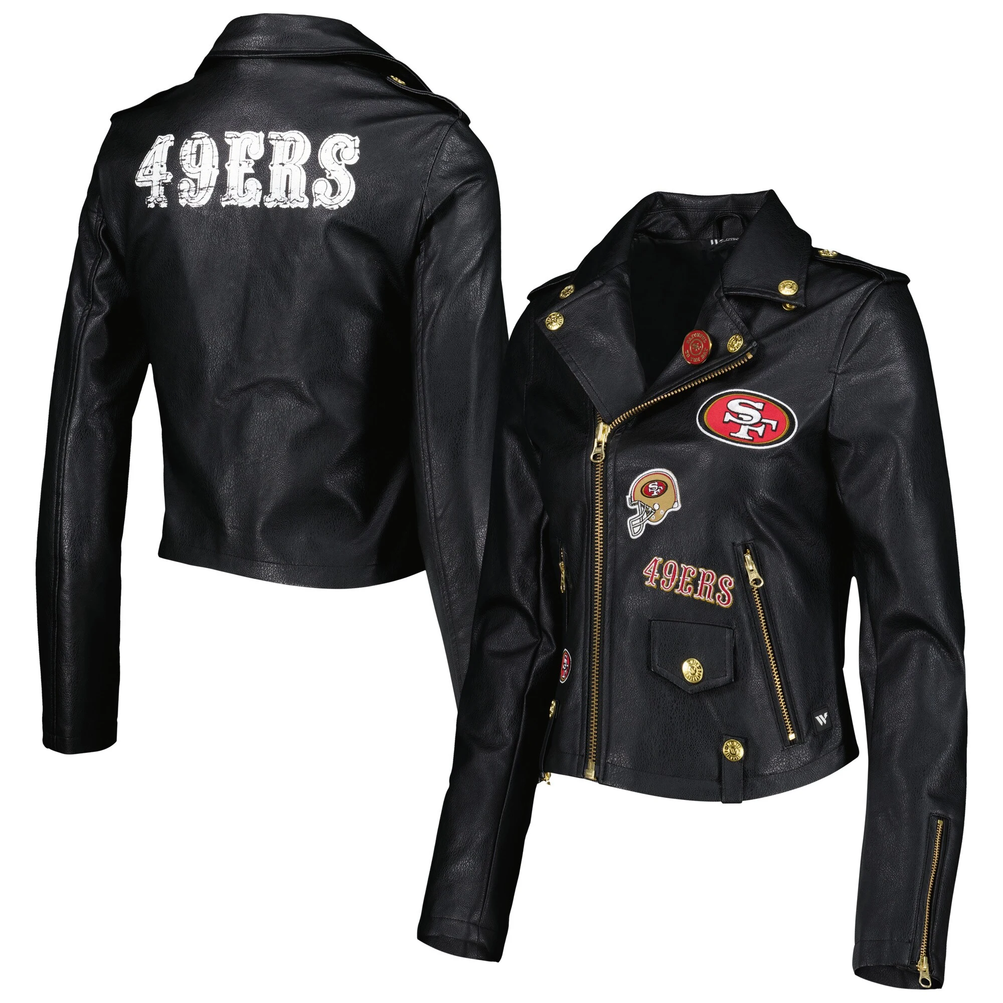 San Francisco 49ers Women’s Biker Full-Zip Leather Black Jacket